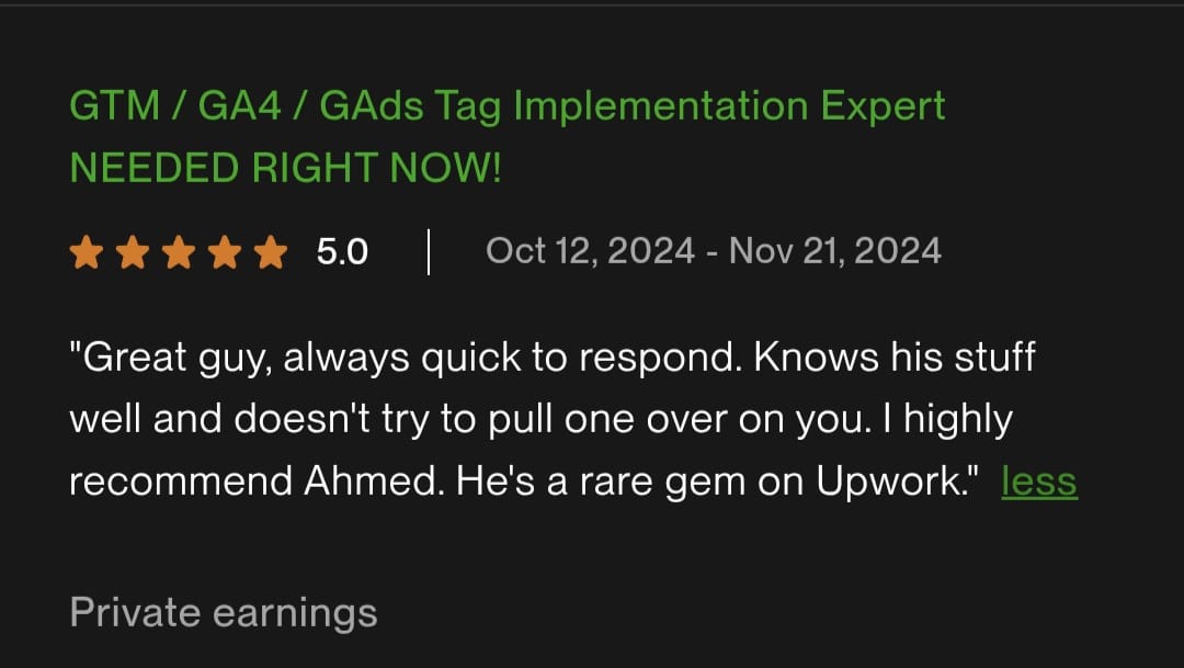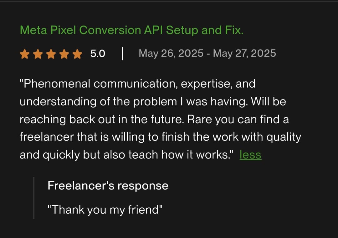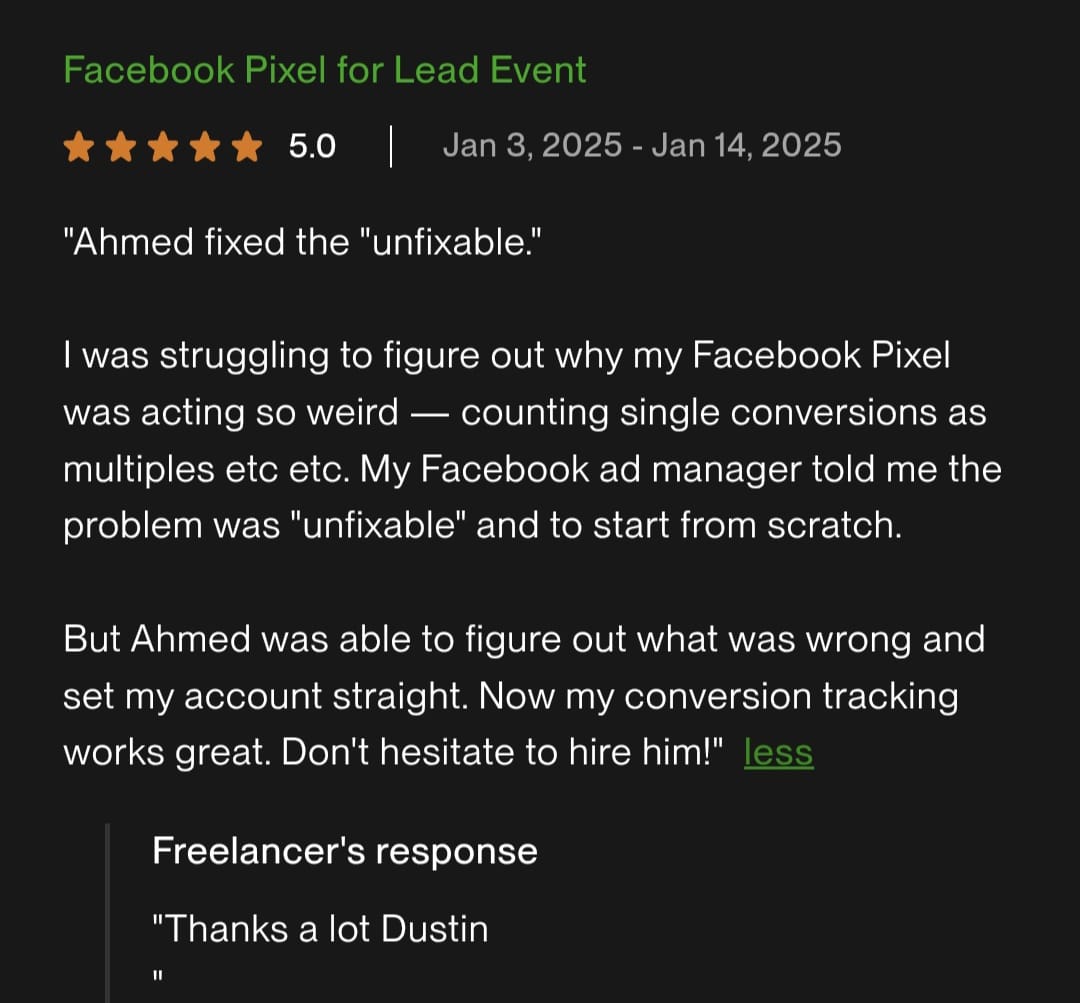 I’m a certified tracking & analytics expert trusted by 100+ businesses when “the other guys” couldn’t solve it. I make sure every click, lead, and purchase is tracked accurately (the way ad platforms actually want it).